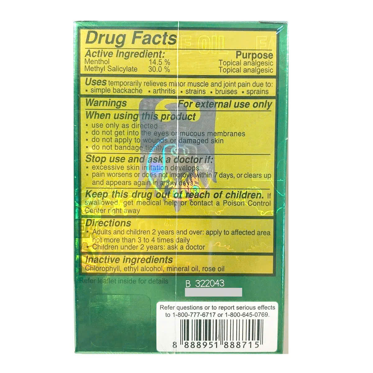 Thành phần Dầu gió xanh 2 nắp Eagle Brand Medicated Oil của Mỹ